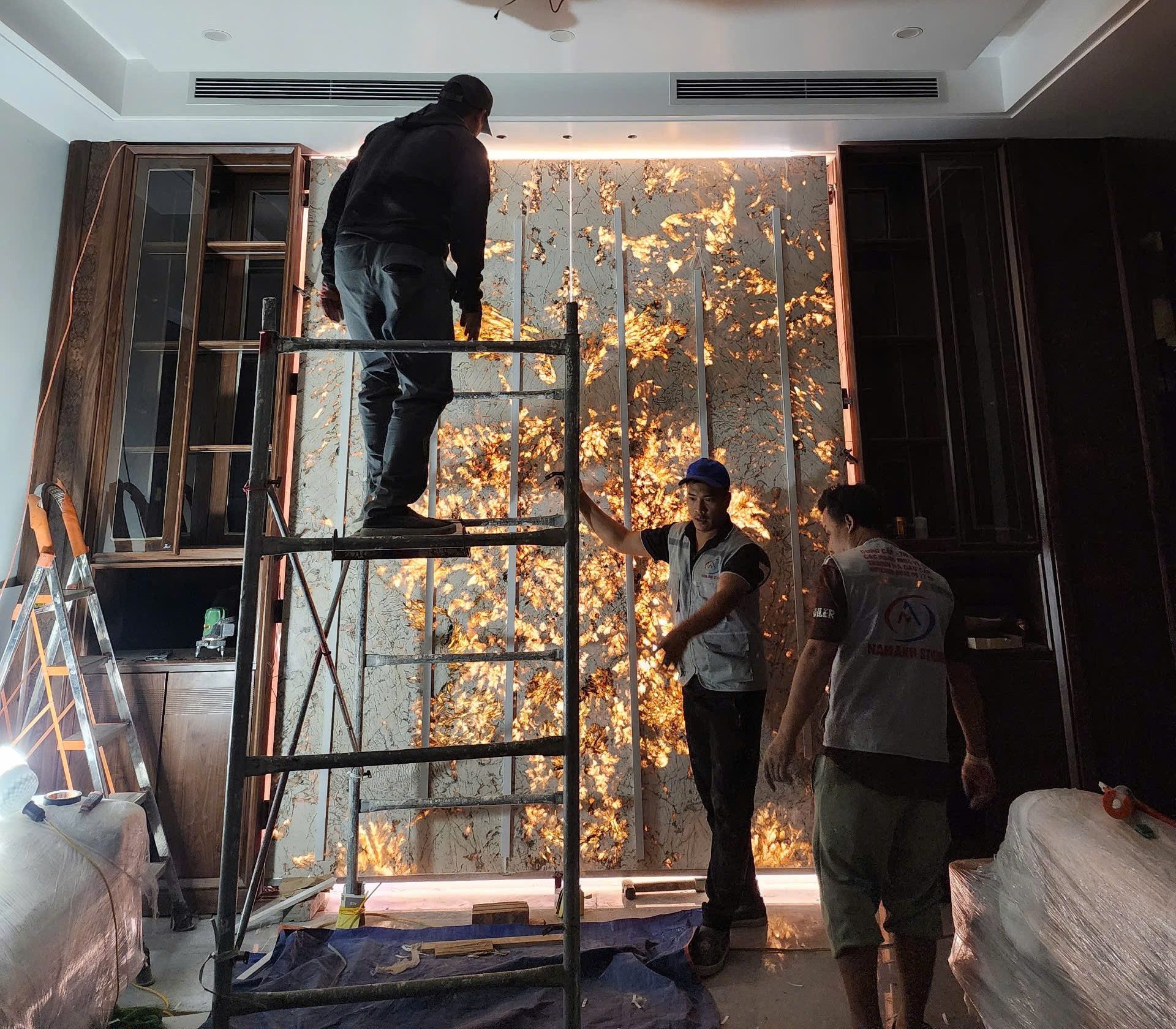 - Hiệu ứng ánh sáng: Khả năng xuyên sáng giúp tranh đá Onyx trở nên lung linh, huyền ảo khi kết hợp với đèn nền.