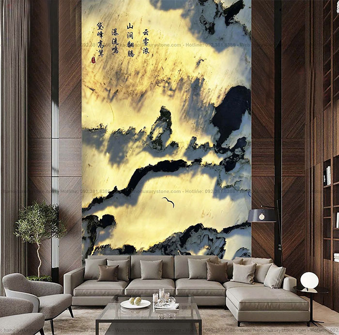 Tranh đá sơn thủy thường được đặt ở trung tâm phòng khách, tạo điểm nhấn ấn tượng và thu hút vượng khí vào nhà.